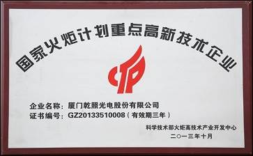 • Key Hi-tech Enterprise of National Torch Plan